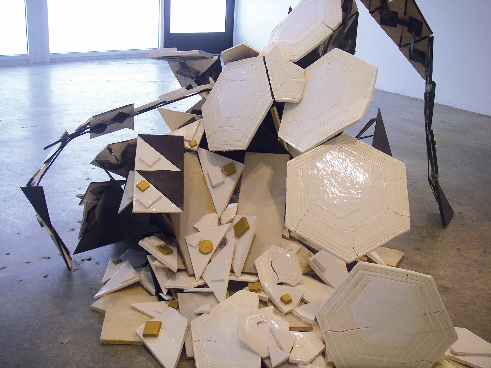 New Work was a solo exhibition comprised of a series of sculptures and drawings. The work explores the abstract use of the unique ceramic tiles that embellished the outside of the art deco building, the gallery occupied.